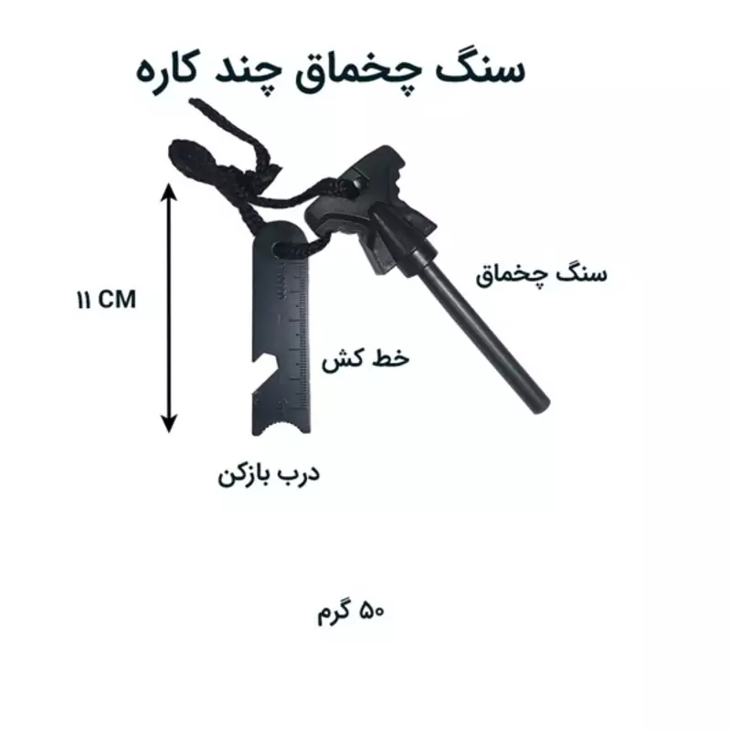 با استفاده از سنگ چخماق چندکاره کمپینگ، می توان به راحتی آتش را روشن کرده و از آن برای پخت و پز غذا، افزایش دما در اطراف اردوگاه یا حتی برای روشنایی استفاده کرد. همچنین وجود ابزارهای کاربردی دیگر نظیر درب بازکن و … می تواند این محصول را به یک مجموعه ابزار چندکاره مناسب تبدیل کند.