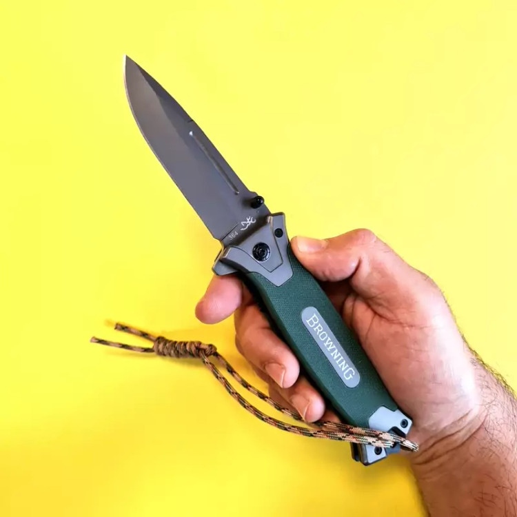 چاقوی Browning مدل 364 یک چاقوی خوش دست با تیغه ای مقاوم و برنده می باشد که به صورت تاشو طراحی شده است و همین عامل سبب سهولت حمل و نقل آن در کوله پشتی می شود . دسته این چاقو کاملا متناسب با ارگونومی دست انسان طراحی شده و جنس آن از ترکیب پلاستیک فشرده و فلز می باشد که ظاهر جذابی را در چاقو ایجاد کرده است . تیغه این مدل از جنس استیل ضدزنگ ساخته شده است . یک عدد گیره نیز بر روی دسته 364 تعبیه شده است که برای اتصال به جیب و کمربند و ... کاربرد دارد . همچنین یک بند از جنس طناب پاراکورد به انتهای چاقو متصل شده است که علاوه بر زیبایی به نگهداری چاقو در دست و جلوگیری از افتادن آن کمک می کند . یک قسمت تیز که به عنوان ضربه زدن کاربردن دارد هم در انتهای چاقو تعبیه شده است . وزن : 179 گرم طول چاقو در حالت باز : 21.8 سانتی متر طول چاقو در حالت بسته : 12.6 سانتی متر جنس دسته : فلزی با روکش فایبرگلاسِ طرح چوب جنس تیغه : فولاد ضد زنگ