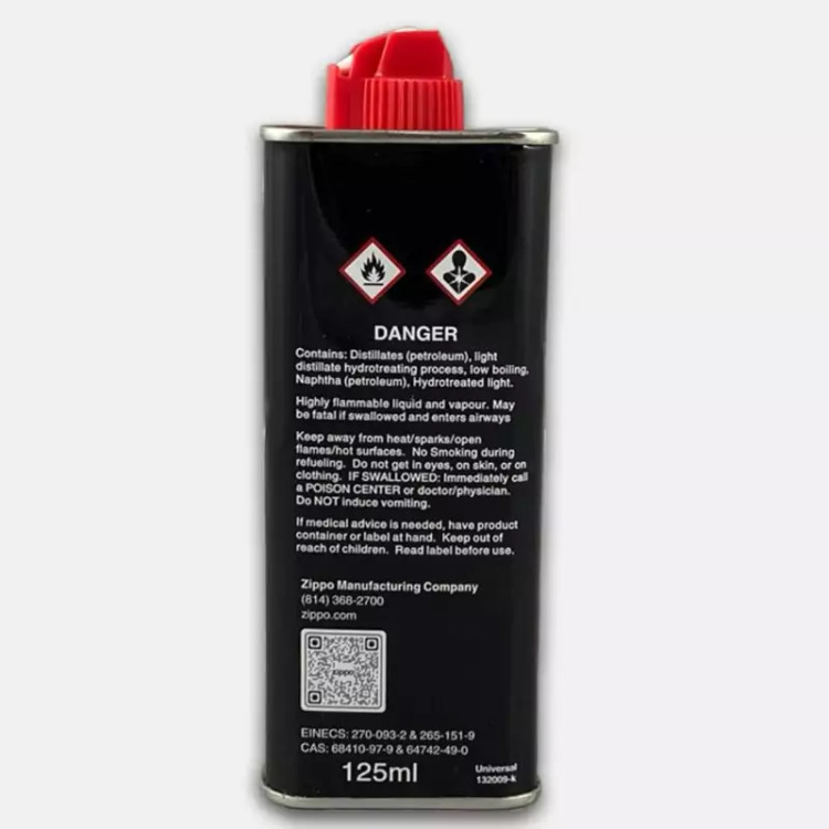 بنزین اصل زیپو ، فندکهای ضدباد زیپو و گرم کننده های دستی زیپو شما را در بهترین حالت کارکردن قرار می دهد. بنزین اورجینال فندک زیپو در قوطی های 125 میلی گرم با درب پلاستیکی عرضه می شود. درب پلاستیکی بنزین اورجینال زیپو درحالت بسته مانع از خارج شدن بنزین می شود و استفاده از آن بسیار راحت است. شما میتوانید بنزین زیپو اصل را تا مدت نامحدود نگهداری کنید. قوطی 125 گرم بنزین زیپو احتراق سریع ، بوی کم سوخت تمیز ساخت امریکا دارای QR کد در پشت قوطی برای کارکرد بهینه فندک های ضدباد زیپو و گرمکن های دستی زیپو توصیه می شود. توجه: بنزین اورجینال زیپو برای استفاده در فندک های ضدباد زیپو و گرمکن های دستی زیپو ساخته شده و برای استفاده در انواع فندک های گازی و دیگر ابزارهای کاربردی در فضای باز مناسب نیست.