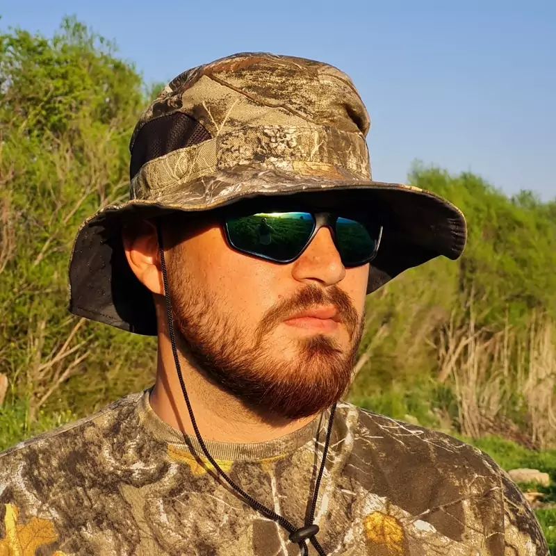 کلاه ماهیگیری و شکار طرح استتار چریکی، یکی از بهترین انتخاب ها برای ماهیگیران و طبیعت گردان است. مناسب برای فصول گرم و مناطق آفتابی است. این کلاه با لبه های بلند صورت و چشم های شما را از نور آفتاب و آفتاب سوختگی محافظت می کند و دید بهتری به شما می دهد. توری دوخته شده دور کلاه از عرق کردن سر جلوگیری می کند. هم چنین دارای گیره ای برای جلوگیری از افتادن کلاه دارد. این کلاه از الیاف کتان و پلی استر ساخته شده است.، 🔴لطفاً قبل از سفارش استعلام بگیرید