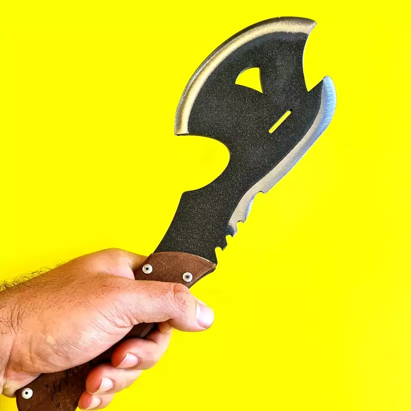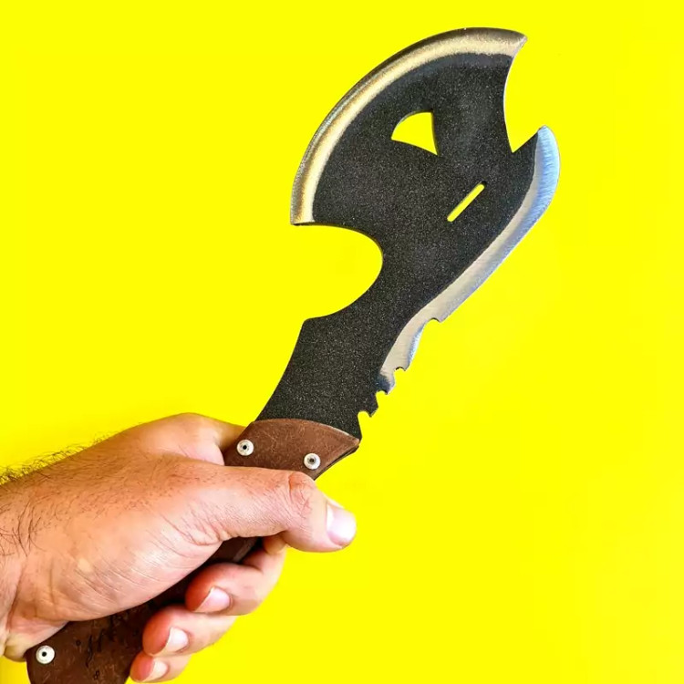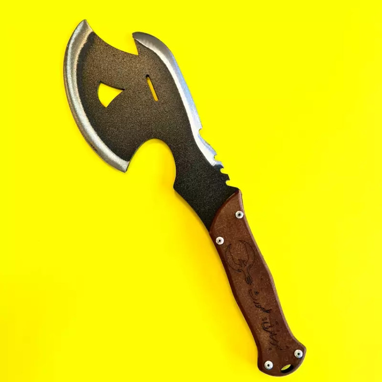 برای هر طبیعتگرد و کوهنوردی داشتن یک تبر و همینطور داشتن یک چاقو بسیار ضروریست.تبر طهمورث هم چاقو و هم تبر را در یک ابزار با طراحی بسیار شیک و جذاب تولید کرده.این تبر تولید کشور عزیزمان ایران میباشد متریال ساخته شده از شاسی ماشین نیسان که بسیار مقاوم و مستحکم میباشد ساخته شده است.ابعاد این تبر 30در 12 سانتی متر می باشد.با وزن کمتر از 500 گرم بدون غلاف تقدیم میگردد.لازم به ذکر است برای عدم صدمه و آسیب در حمل و نقل این تبر خیلی تیز نمی باشد و در صورت نیاز خودتان براحتی میتواتید تیزش کنید.