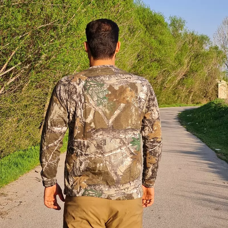 تیشرت آستین بلند طرح شاخ و برگ (استتار) لباس تاکتیکال تیشرت شکار پیراهن کوهنوردی و طبیعتگردی