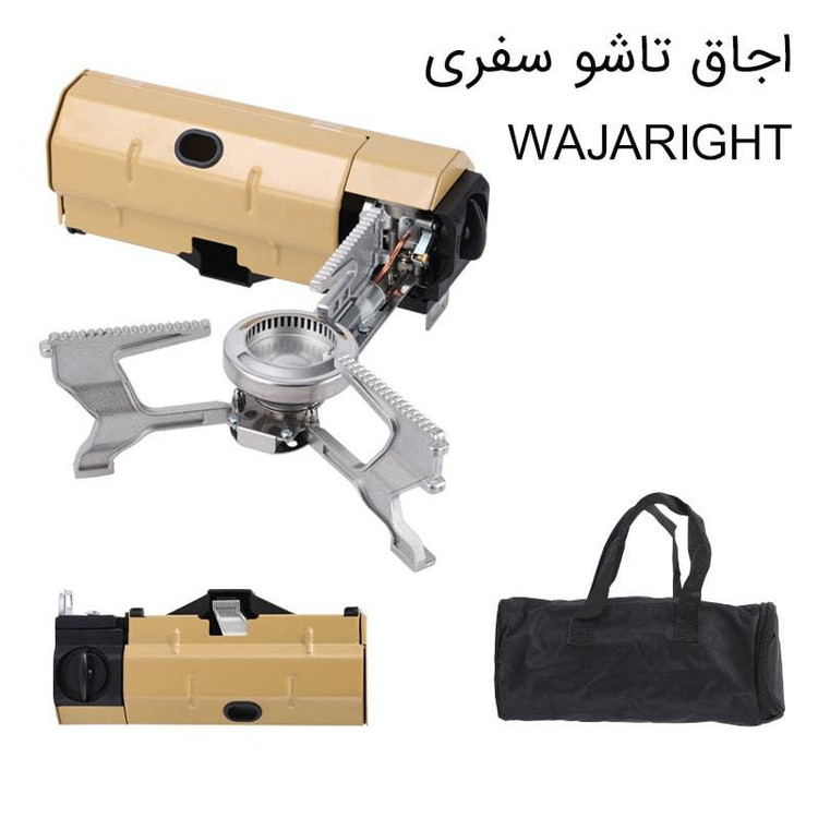 اجاق گاز سفری مدل تاشو WAJARIGHT یک مشعل گازی رومیزی است که ایده آل برای کمپینگ یا خارج از تعطیلات است و حتی در صورت عدم استفاده، بهطور مرتب جمع میشود. جنس بدنه این اجاق گاز از فلز و وزنی حدودا 1300 گرم دارد که مناسب برای مسافرت، کمپینگ و کوهنوردی می باشد. قدرت این اجاق گاز 2600 وات و میزان مصرف گاز 120 گرم در ساعت می باشد.نوع سوخت این اجاق گاز سفری تاشو کپسول استوانه ای بوتان است و تا وزن 20 کیلوگم را تحمل می کند. این اجاق گاز سفری تاشو د در حالت بسته 27.5*10.5*8 سانتی متر و قطر پایه 26 سانتی متر می شود. این اجاق با کمک کپسولهای استوانهای کار میکند که به راحتی می توانید آن را تهیه کنید. میتوانید روی اجاق به آسانی ظرف یا قابلمهی خود را قرار داده و با آرامش کامل در کمپ مشغول آشپزی شوید. سیستم اتصال کارتریج(کپسول) سوخت در این اجاق زیبا از نوع مگنتی بوده و اجاق دارای جرقه زن جهت اشتعال راحت تر میباشد. پایه های بلند این اجاق باعث ایجاد فاصله کافی با سطح میز شده و کمترین میزان گرما را به روی سطح منتقل مینماید.این اجاق بهترین انتخاب برای افرادی میباشد که فضای بار محدودی داشته و کیف پارچه ای آن به خوبی از اجاق محافظت و حمل آن را آسان مینماید.