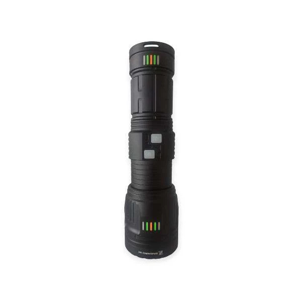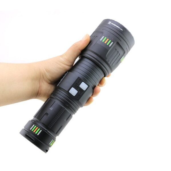 این محصول نمونه یک چراغ قوه کاربردی است که پرتاب نور خوبی داشته و برای استفاده در سفر، کمپینگ، طبیعت گردی و فضای باز بسیار مناسب است. 4 حالت نوری زیاد، متوسط، کم و چشمک زن نیز برای آن در نظر گرفته شده است. 4 عدد باطری لیتیوم یون 18650 با ظرفیت 2500 میلیآمپر ساعتی این چراغ را تغذیه میکنند.