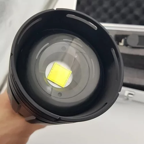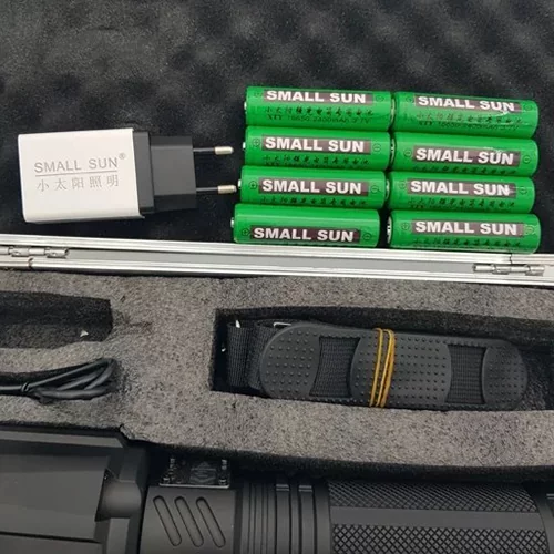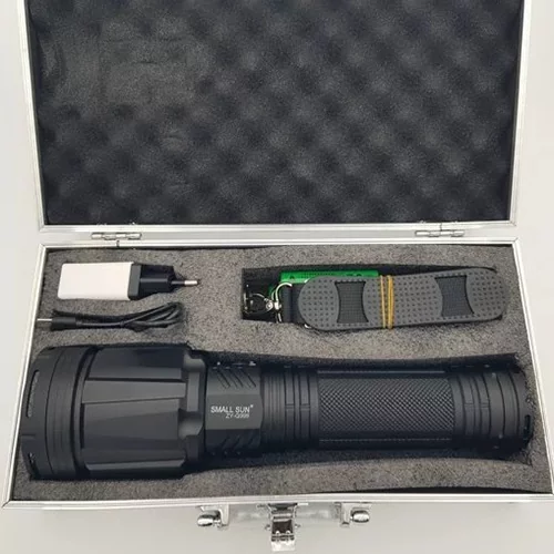 این چراغ قوه اسمال سان دارای برد نور تا 1000 متر است. همچنین دارای حالتهای روشنایی شامل نور زیاد، نور متوسط و نور چشمک زن، زوم و متمرکز است. این چراغ قوه از پک 8 تایی باتری 18650 با ظرفیت 30400 میلی آمپری برای شارژ سریع و زمان روشنایی بیشتر استفاده میکند. یکی از قابلیتهای این چراغ قوه ویژگی زوم میباشد. همچنین میتوانید به آسانی با پورت تایپی سی این چراغ قوه را شارژ نمایید. نور این محصول سفید بوده که تاریکترین مکانها را برای شما روشن مینماید. این چراغ قوه مجهز به خروجی پاوربانک است که میتوانید گوشی تلفن و یا لوازم جانبی را با کمک آن شارژ نمایید.