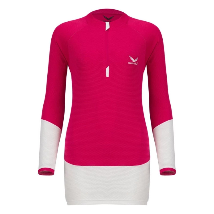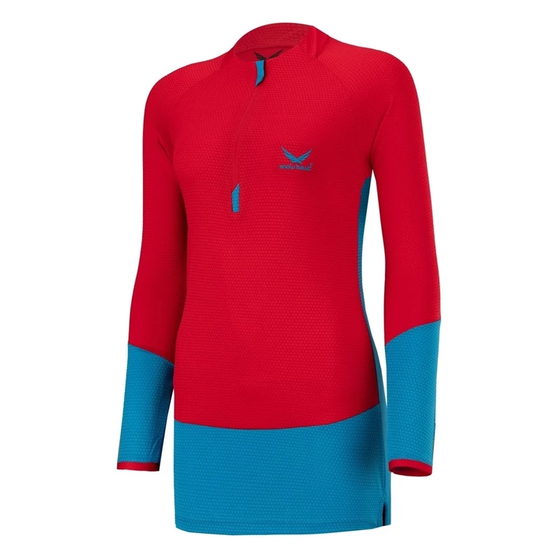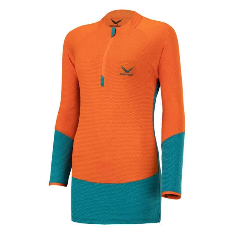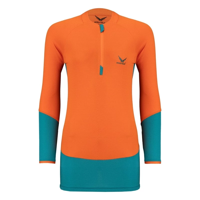 تیشرت زنانه آستین بلند نیم زیپ اسنوهاک کد SN-C2118 پارچه جذب و باریک با برش سه بعدی و حالت کششی چهار طرفه، مقاوم در برابر باد، مناسب فصل بهار و پاییز است.