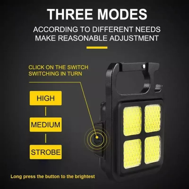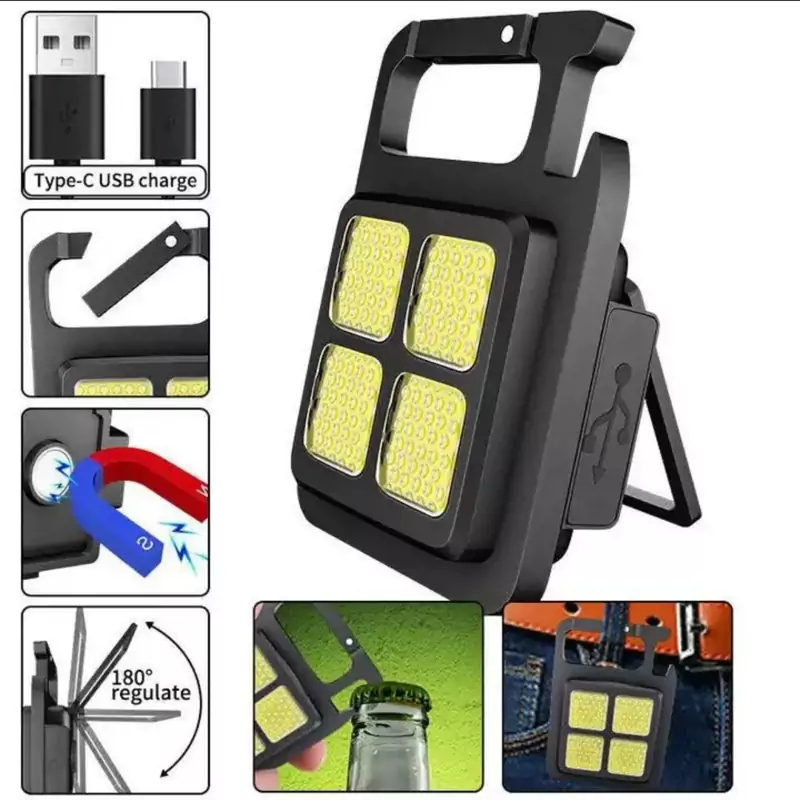 این چراغ قوه چند کاره با قدرت نکر دهی 1000 لومن ساخته شده از پلاستیک ABS و قاب فلزی با رنگ بدنه مشکی میباشد. دارای باتری داخلی لیتیومی قابل شارژ و کابل شارژ تایپ C دارای سه حالت نوردهی قوی،ضعیف و strobe با رنگ نور سفید مهتابی سبک و استفاده اسان دارای ابعاد 6×4/5 که با وجود این ابعاد می توان به ان لقب چراغ قوه جیبی داد دارای اهنربا در قسمت پشتی چراغ قوه COB Rechargeable Keychain light برای اتصال به سطوح فلزی دارای جای سوراخ براکت برای پیچ شدن به سه پایه قابل استفاده به عنوان درب باز کن بطری دارای گیره برای اویز کردن و قلاب کردن و همچنین دارای کارابین دارای طراحی ارگونومیک و راحت و مقاوم در برابر ضربه 🔴 لطفا قبل از سفارش محصول استعلام بگیرید و در صورت نیاز به کسب اطلاعت بیشتر از فروشنده مشاوره بگیرید. با تشکر🍃🌹 دارای وزن 45 گرم و منبع نور LED COB